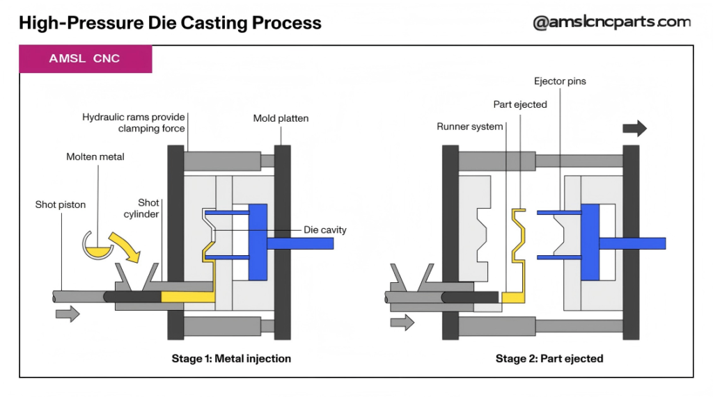 The standard die casting process follows a fast, repeatable 5-step cycle, powered by modern die casting machine technology: